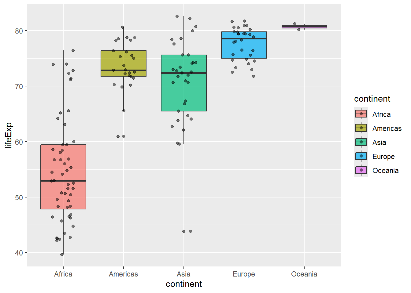 ggplot(aes(x = continent, y = lifeExp, fill = continent)) +