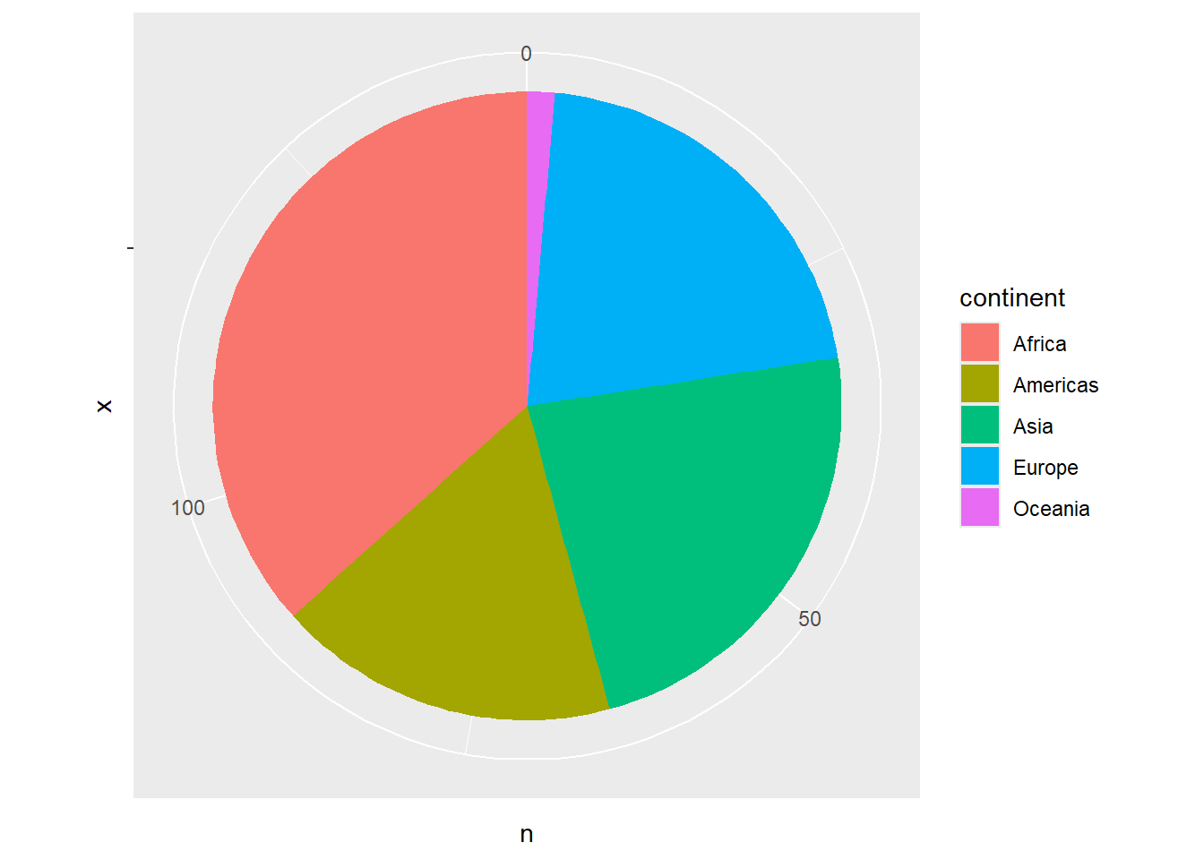 Coordinates | Use polar coordinates | coord_polar(theta = "y") |