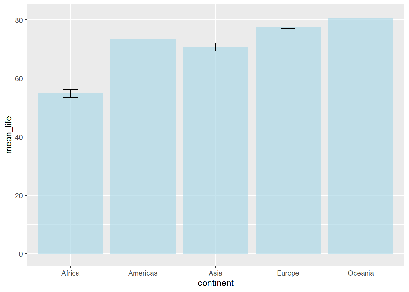 Geoms | Add bars with heights from data | geom_col(fill = "blue") |