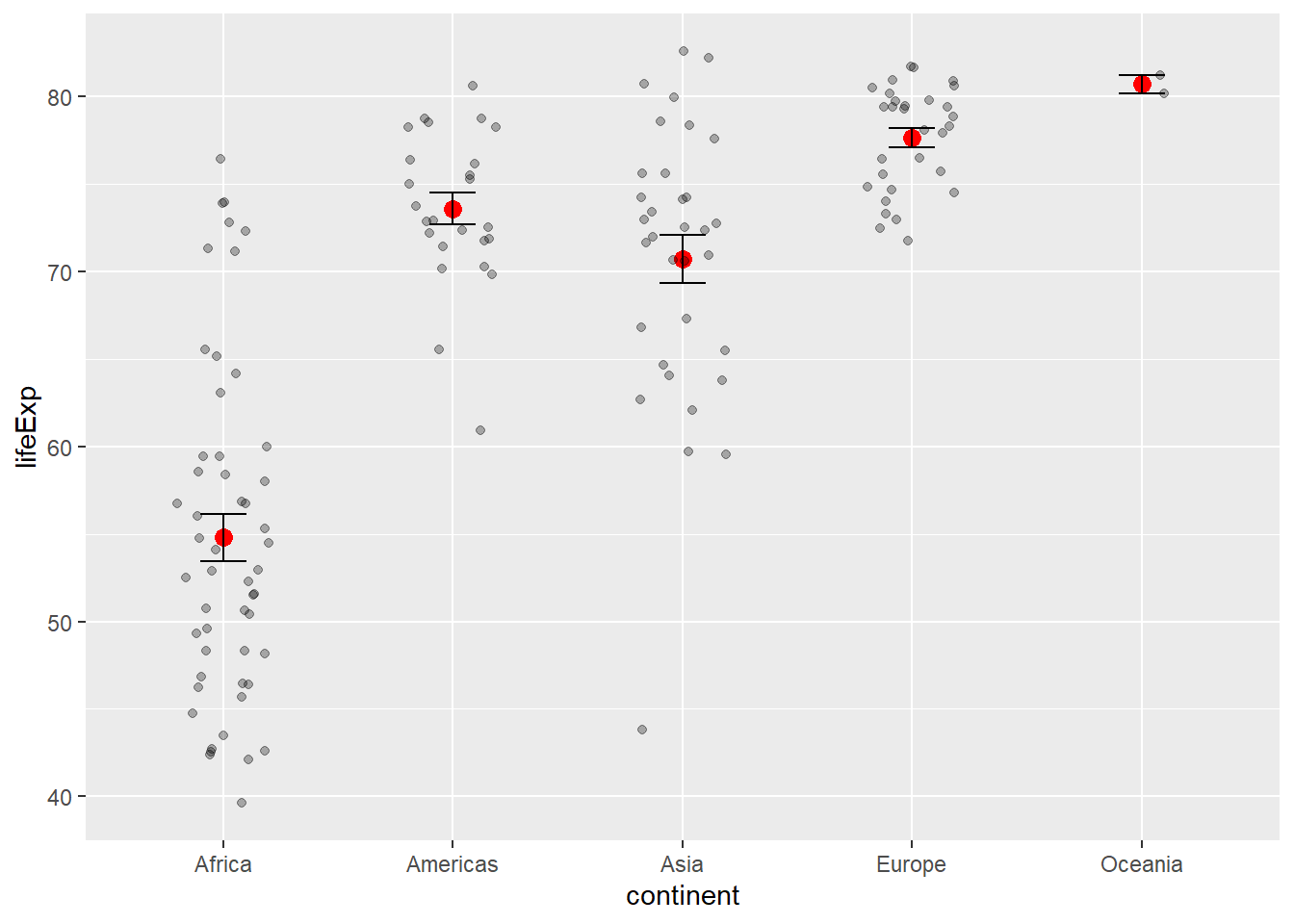 Geoms | Add jittered points | geom_jitter(width = 0.2) |