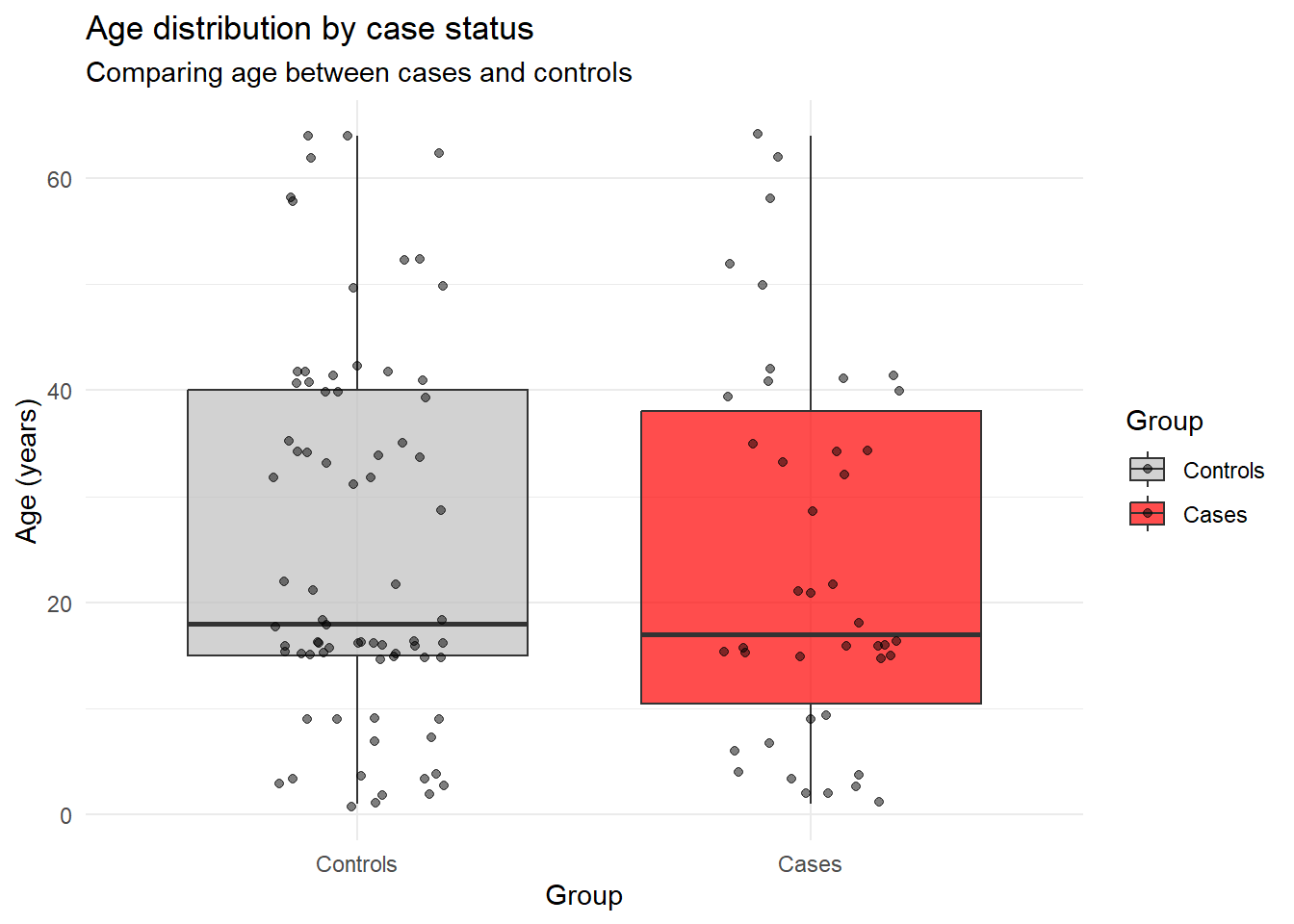 - Tested demographic differences: Determined whether cases and controls are comparable in age and sex distribution